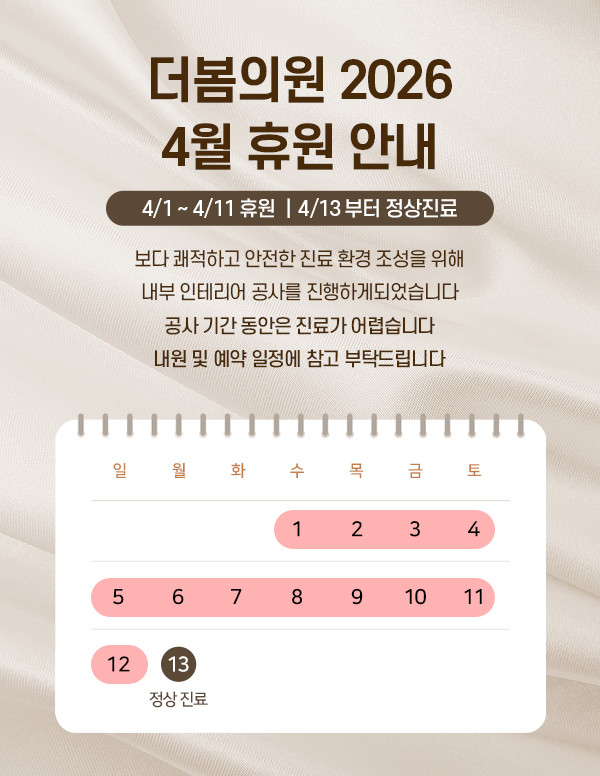 전화주시면 친절히 상담해드리겠습니다. 카카오톡 @더봄의원※ 토요일, 일요일 및 공휴일 휴진